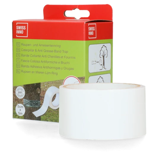 Een boomlijmband voorkomt dat kruipende vleugelloze insecten, zoals rupsen en mieren, via de stam in een boom of struik kunnen komen om schade aan te richten.