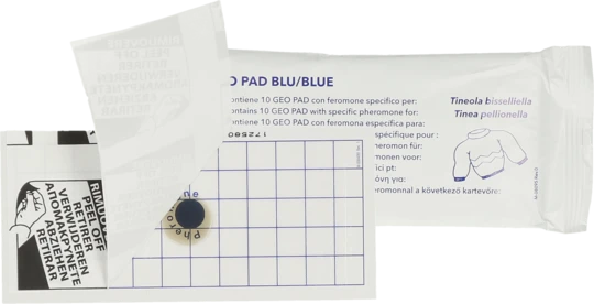 In de lijmlaag is het specifieke feromoon geïntegreerd voor het aantrekken van de kleermotten.