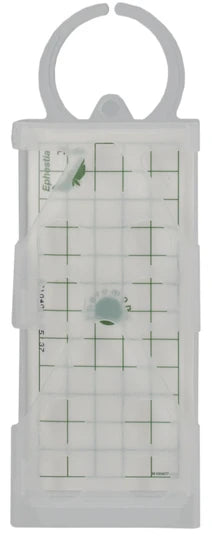 Lijmplaat om levensmiddelenmotten mee te monitoren en te vangen. De Geo Lijmplaat levensmiddelenmotten wordt eenvoudig in de Motten Monitorval (INPEP-04100) geplaatst. In de lijmlaag is het specifieke feromoon geïntegreerd voor het aantrekken van Ephestia/Plodia mottensoorten.